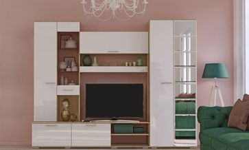 Гостиная Флай — комплексное решение для оформления уютной и практичной обстановки. Ящики, полки и ниши позволят до мелочей продумать интерьерную композицию и удобно распределить любимые вещи.<br>