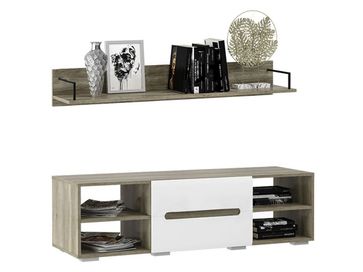 В состав комплекта входят (ВхШхГ): <br> ТВ-тумба: 408 х 1402 х 460 мм.<br> Полка: 184 х 1300 х 272 мм.<br> Шкаф-витрина низкий: 1600 х 602 х 460 мм.<br> Шкаф-витрина: 1900 х 602 х 460 мм.<br>