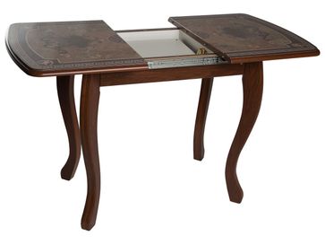 Чтобы разложить стол, нужно раздвинуть две части столешницы, достать из подстолья дополнительную вставку «бабочка» и установить между крыльев столешницы. Синхронный механизм трансформации позволяет раздвинуть столешницу одной рукой. None Страна производства: Россия