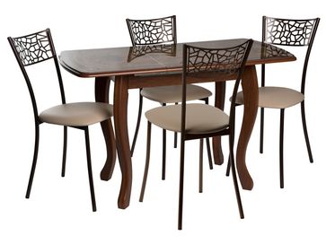 Обеденная группа Альпер прекрасно впишется в стильный и уютный интерьер гостиной или кухни. Компактный стол легко раскладывается и позволит разместить за собой семью или компанию друзей.<br>
