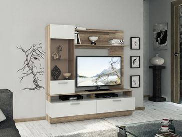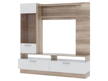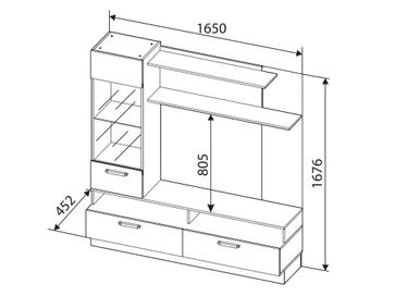 Характеристики: <br> Материал корпуса: ЛДСП.<br> Материал фасадов: ЛДСП, стекло.<br> Материал ручек: пластик АБС.<br> Размер ниши под ТВ (ВхШ): 805 х 1208 мм.<br> Тип направляющих: шариковые.<br> Ориентация сборки: только так, как представлено на изображении.<br> None Страна производства: Россия
