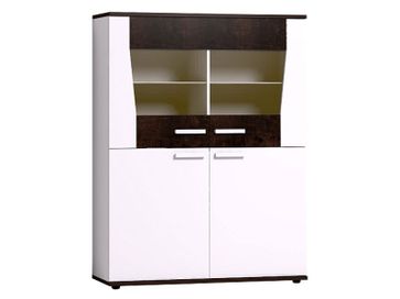 Характеристики:<br> Материал каркаса: ЛДСП 22 мм.<br> Материал фасада: ЛДСП 16 мм, стекло.<br> Материал ручек: массив дерева.<br> Тип крепления полок: скрытое.<br> Тип направляющих ящиков: шариковые.<br> <br>