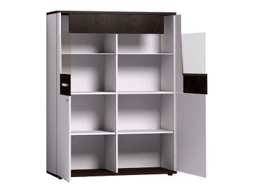 Состав комплекта (ВхШхГ): <br> Шкаф-витрина низкий: 1591 x 1204 x 400 мм.<br> Шкаф-витрина высокий: 2125 x 560 x 400 мм.<br> ТВ-тумба: 473 x 1522 x 400 мм.<br> Полка, 2 шт.: 198 x 1204 x 214 мм.<br> <br>