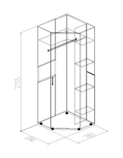 <br> Подставка под ТВ в комплект не входит.<br> Угловой шкаф имеет встроенную подсветку в крышке, стационарную штангу и ряд полок. Оба прямых шкафа комплектуются выдвижной штангой, в комплект одного из них также входит три полки, которые устанавливаются по желанию.<br>