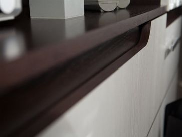 Модульная угловая гостиная Виспа в темном корпусе, разбавленном светлыми фасадами. Модули стенки сделаны в современном оформлении и понравятся искателям свежих идей для своего дома. Фасад ящика в шкафу-витрине сделан в объемном декоре, который ярко выделяется на фоне гладких дверей шкафов. Ручки оформлены мерцающими стразами.<br>