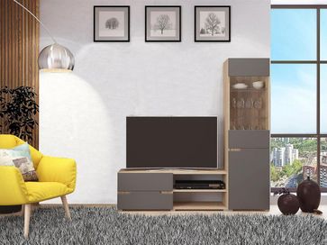 Гостиная Анталия Стандарт поможет обустроить небольшую и уютную комнату. Тумба прекрасно подойдет для размещения аудио-видео техники. А благодаря шкафу со стеклянной дверцей, любимые сувениры или праздничная посуда будут защищены от пыли.<br>