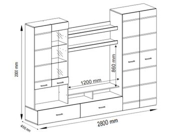 Характеристики: <br> Материал корпусов: ЛДСП.<br> Материал фасадов: МДФ с глянцевым покрытием.<br> Материал ручек: пластик АБС.<br> Тип направляющих: роликовые.<br> Тип штанги: продольная.<br> Размер ниши для ТВ (ВхШ): 860 х 1200 мм.<br> Ориентация сборки: универсальная.<br> None Страна производства: Россия