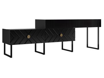 Характеристики: <br> Материал корпусов: ЛДСП.<br> Материал фасадов: МДФ.<br> Материал опор и ручек: металл.<br> Механизм открывания: распашной.<br> Тип направляющих: шариковые.<br> Ориентация сборки ТВ-тумбы: только так, как представлено на изображении.<br> Дверца навешивается на любую сторону.<br>