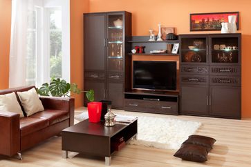 Обратите внимание! Вы можете выбрать удобный вариант покупки гостиной: со светодиодной подсветкой для стеклянных полок или без нее. Для подключения подсветки в комплект входит блок питания с разветвителем на шесть стеклополок.<br> Подсветка крепится к клипсе, которая надевается на торцевую часть полки, присоединяется к блоку питания и включается в розетку. <br /> Подсветка излучает теплый свет.С инструкциями по сборке можно ознакомиться на страницах отдельных моделей. None Страна производства: Россия