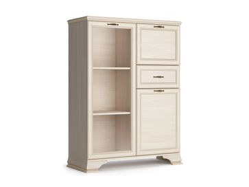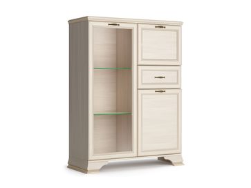 <br> Корпус выполнен из ЛДСП, опоры — МДФ. Изделия комплектуются металлическими ручками цвет «старая бронза» и надежной крепежной фурнитурой. Ящики оснащены шариковыми направляющими. Петли на дверях имеют доводчики.<br> Обратите внимание! В стандартную комплектацию входят шкафы-витрины с полками из ЛДСП, при желании вы можете дополнить их стеклополками. Нужную комплектацию необходимо выбрать перед оформлением заказа.С инструкциями по сборке можно ознакомиться на страницах отдельных моделей. None Страна производства: Россия