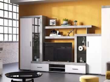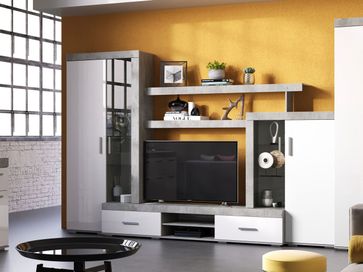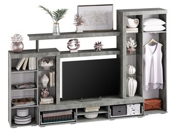 Гостиная Инстайл — это неординарный дизайн и функциональность, благодаря которым можно создать уникальный интерьер с продуманной системой хранения. Аскетичную фактуру бетона гармонично уравновешивают глянцевые фасады. Регулируемые опоры позволяют установить стенку даже на неровной поверхности.<br>
