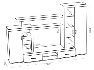 Характеристики: <br> Материал корпуса: ЛДСП 16 мм.<br> Материал фасадов: ЛДСП 16 мм, стекло 4 мм.<br> Материал полок: ЛДСП 16 мм, стекло 6 мм.<br> Материал ручек: металл.<br> Тип направляющих: шариковые.<br> Размер ниши для ТВ (ВхШ): 900 х 1200 мм.<br> Максимальная нагрузка на ящик и деревянную полку: 10 кг.<br> Максимальная нагрузка на стеклянную полку: 5 кг.<br> Ориентация сборки: универсальная.<br> None Страна производства: Россия