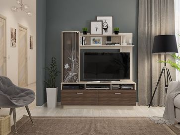 Мини-стенка Афина — удачное сочетание строгих лаконичных линий и очаровательного растительного узора. Изделие найдет свое место в рамках любого современного интерьера. Тандем открытых и закрытых полочек поможет рационально использовать пространство. Несмотря на компактность конструкции, система хранения сможет уместить в себе множество различных предметов.<br> Характеристики:<br> Материал корпуса: ЛДСП 16 мм.<br> Материал фасада: ЛДСП 16 мм, гнутое матированное стекло.<br> Ориентация сборки: только так, как показано на изображении.<br> None Страна производства: Россия