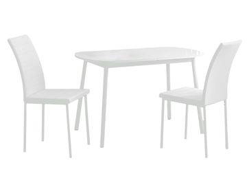 Очаровательный мебельный комплект Раунд Винс 2 для оформления обеденной зоны кухни или гостиной.<br> Комплект состоит из прямоугольного стола и двух эргономичных стульев. Такой набор станет отличным решением для молодой семьи или владельцев небольшой кухни.<br> Для производства изделий используются такие материалы, как металл, ЛДСП, стекло и экокожа.<br> Габариты стола (ВхШхГ) — 750 х 1200/1520 х 700 мм.<br> Габариты стула (ВхШхГ) — 950 х 410 х 570 мм.<br> Стеклянная поверхность столешницы обработана методом закаливания, благодаря чему является прочной и устойчивой к высоким температурам.<br> Раскладной стол не имеет острых углов, за счет чего достигается должный уровень безопасности, что очень важно для заботливых родителей.<br> Металлические ножки изделия могут регулироваться в диапазоне до 15 мм, поэтому вы сможете разместить модель даже не неровной поверхности пола. None Страна производства: Россия
