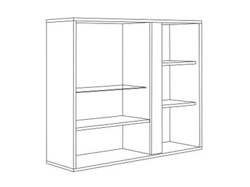 В комплект входят (ВхШхГ): <br> Шкаф-витрина: 1937 х 600 х 413 мм.<br> Шкаф навесной: 820 х 964 х 301 мм.<br> ТВ-тумба: 461 х 1300 х 413 мм.<br> Настенная полка: 200 х 1300 х 216 мм.<br>
