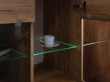 Характеристики: <br> Материал корпусов: ЛДСП 16 мм.<br> Материал фасадов и полок: ЛДСП 16 мм, стекло.<br> Материал задних стенок: ДВПО.<br> Механизм открывания дверок: за выступ.<br> Максимальная нагрузка на стеклянные полки: 1 кг.<br> Тип крепления к стене: скрытое.<br> Подсветка стеклянных полок: светодиодная лента (входит в комплект).<br>
