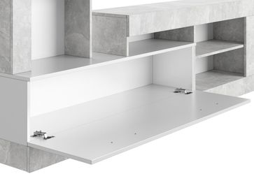 <br> Характеристики: <br> Материал корпусов: ЛДСП.<br> Материал фасадов: МДФ.<br> Материал ручек: пластик АБС.<br> Механизм открывания дверки: газ-лифты.<br> Максимальная нагрузка на ТВ-тумбу: до 100 кг.<br> Ориентация сборки: только так, как показано на изображении.<br> <br>