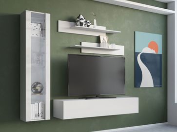 Характеристики: <br> Материал корпусов: ЛДСП 16 мм.<br> Материал фасадов: МДФ в финиш-пленке ПВХ, стекло 4 мм.<br> Механизм открывания ТВ-тумбы: газлифты плавного открывания с системой «push-to-open».<br> Механизм открывания шкафа: петли с системой «push-to-open».<br> Ориентация сборки: универсальная.<br>