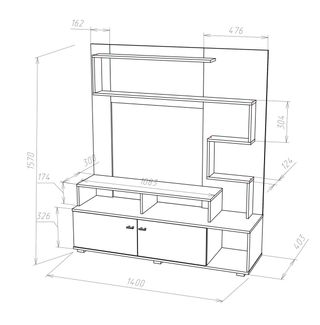 Характеристики:<br> Материал корпуса и фасада: ЛДСП 16 мм, кромка ПВХ.<br> Материал ручек: пластик.<br> Размер ниши под ТВ: 1083 х 300 мм.<br> Ориентация сборки: уиверсальная.<br> <br>