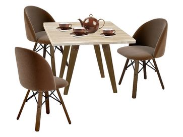 Состав комплекта (ВхШхГ): <br> Стол: 755 х 800 х 800 мм.<br> Стул, 3 шт.: 805 х 490 х 530 мм.<br>
