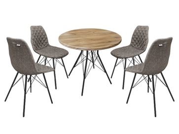 Состав комплекта (ВхШхГ): <br> Стол: 760 х 800 х 800 мм.<br> Стул, 4 шт.: 855 х 470 х 490 мм.<br>