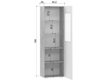 Состав комплекта (ВхШхГ): <br> Высокий шкаф-витрина: 1980 x 602 x 380 мм.<br> ТВ-тумба: 340 x 1794 x 476 мм.<br> Надстройка для тумбы: 166 x 1796 x 364 мм.<br> Шкаф-витрина: 1620 x 952 x 380 мм.<br> Полка, 2 шт.: 176 x 1204 x 240 мм.<br> <br>