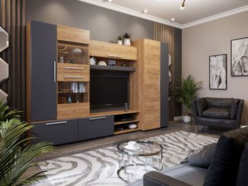 Гостиная Сафари позволит рационально и практично спланировать обстановку. Богатое внутреннее наполнение предоставит достаточно пространства, чтобы разместить всё необходимое: от одежды и книг до посуды и аксессуаров.<br>