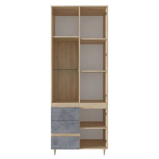 В состав комплекта входят (ВхШхГ):<br> Шкаф-витрина: 2085 х 790 х 410 мм.<br> Распашной шкаф: 2085 х 790 х 520 мм.<br> ТВ-тумба: 500 х 1175 х 410 мм.<br> Навесной шкаф: 405 х 1365 х 255 мм.<br> Комод: 955 х 1175 х 410 мм.<br>