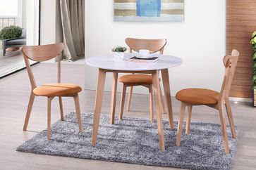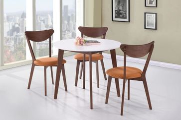 Боско Макси 2 — стильный и практичный набор мебели для оформления обеденных зон. Современный дизайн исполнения позволит вам разместить комплект в любом помещении, будь то кухня, столовая или гостиная комната.<br> В комплектацию входят:<br> стул с мягким сиденьем х 3 шт (ВхШхГ) — 860 х 480 х 550 мм;<br> обеденный стол круглой формы (ВхШхГ) — 750 х 900 х 900 мм.<br> Ножки и основания изделий произведены из натурального дерева — массива бука. Столешница и спинки стульев изготовлены из МДФ и шпона бука.<br> Расстояние от пола до сиденья — 435 мм.<br> Представлено два варианта расцветки комплекта: тёмное дерево и натуральный бук. Оба цвета идеально сочетаются с белым, а мягкая и приятная на ощупь оранжевая ткань прекрасно завершает образ. None Страна производства: Малайзия