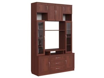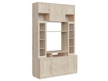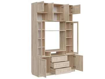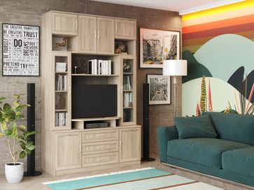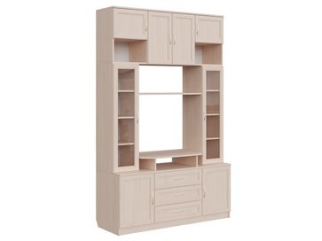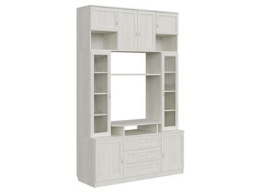 Характеристики: <br> Материал корпуса: ЛДСП 16 мм.<br> Материал фасада: ЛДСП, МДФ, стекло.<br> Материал ручек: металл.<br> Тип направляющих: роликовые, шариковые только в цвете арктика.<br> Размер ниши под ТВ (ВхШхГ): 600 х 790 х 490 мм.<br> Высота ниши над ящиками: 120 мм.<br> Ориентация сборки: только так, как представлено на изображении.<br> Обратите внимание! Шкаф в цвете молочный дуб комплектуется матовыми стеклами, у моделей в остальных цветах стекла прозрачные. None Страна производства: Россия