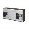 Универсальный современный шкаф тумба с шестью выдвижными ящиками и двумя распашными дверками со стеклом, прекрасно впишется в любой интерьер спальни, гостиной или любой другой комнаты. По краям комода расположены широкие симметричные секции, за распашными дверками со стеклянной вставкой имеются стеклянные полочки для хранения посуды или декоративных предметов. Стеклянные выгнутые вставки украшены пескоструйным рисунком. None Есть доставка.