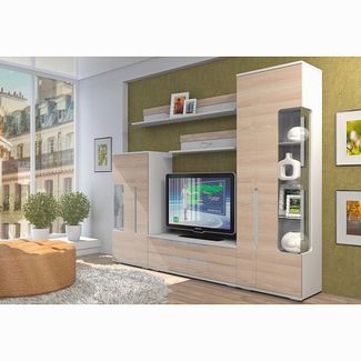 Стенка оборудована нишей под телевизор, имеются ящики, полки и шкафы для одежды и аксессуаров. Все выполнено в единой стилистике. Модель достаточно надежна и прочна, имеет современный дизайн. Хорошо сочетается с любым дизайном помещения. Работаем круглосуточно!Возврат 21 день. Страна производства: Россия Есть доставка.