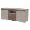 Небольшая телевизионная тумба, изготовленная в современном стиле несомненно украсит интерьер спальни или гостиной. Тумба не занимает много места, однако оснащена всем необходимым, двумя распашными дверками по бокам внутри которых по две полки в каждой, двумя выдвижными ящиками и одной открытой полкой. В верхней части тумбы декоративная панель МДФ с обьемным рисунком в виде волнистых линий. None Есть доставка.