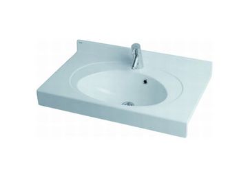 Изящная прямоугольная раковина для вместительных ванных комнат. Отлично подойдет, если Вы не хотите устанавливать много мебели. Так же это отличное решение, если установке тумбы мешают трубы, проходящие под раковиной.
