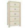 Высокий узкий комод, который несмотря на компактные размеры отличается простотой, надежностью, вместительностью, функциональностью, станет радостью и гордостью хозяйки дома, а также будет отлично смотреться в интерьере спальни, детской или прихожей. Практичный комод оснащенный пятью выдвижными ящиками, в которых можно бережно и аккуратно разложить белье, одежду и какие-то другие вещи. Фасады ящиков декорированы оригинальной фрезеровкой и стильными ручками, которые добавляют ему элегантности. Купить комод с пятью ящиками можно как в составе целого комплекта, а можно как отдельный предмет мебели. None Есть доставка.