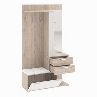 Бренд - Мебель Трия (Россия), Серия - Эрика, Ширина, мм - 1100, Высота, мм - 1982, Выступ, мм - 357, Компоненты, входящие в комплект - 1 дверца, 2 ящика, 3 крючка, 4 полки, Стиль - модерн, Размеры, мм - 1100x357x1982, Материал обивки - кожа искусственная, Материал фасада - ЛДСП Е1, Материал корпуса - ЛДСП Е1, Страна производителя - Россия, Объем упаковки, куб. м - 0.13, Цвет обивки - белый, Цвет фасада - белый, дуб сонома, Цвет корпуса - дуб сонома, Гарантия, месяцы - 24 Работаем круглосуточно!Возврат 21 день. Страна производства: Россия Есть доставка.