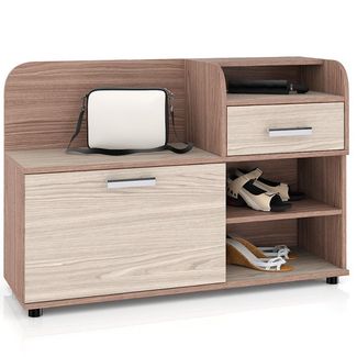 Пэ Пять Тумба 1050. Цвет - ясень шимо светлый/ясень шимо тёмный. Размер (ШхГхВ) 105х36х71 см. Нарядная и вместительная тумба с закрытым откидной дверкой отделением для обуви, выдвижным ящиком, тремя открытыми нишами и удобным сидением - функциональный комфорт Вашей прихожей! Универсальная сборка. None Есть доставка.