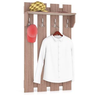 Пэ Пять Вешалка 800. Цвет - ясень шимо тёмный. Размер (ШхГхВ) 80х25х140 см. Элегантная и удобная навесная вешалка с четырьмя большими двойными крючками для одежды и антресольной полочкой для головных уборов - самый экономичный вариант обеспечения порядка в прихожей. None Есть доставка.