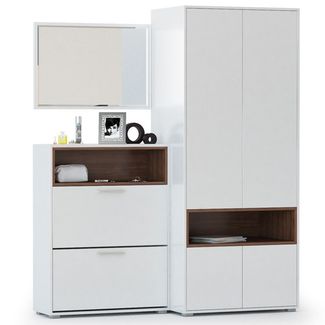 Прихожая Лайт комплектация 3. Цвет орех селект каминный/белый премиум. Размер (ШхГхВ) 158х52х190 см. Функциональная прихожая, состоящая из шкафа для одежды, обувницы и зеркала, станет удобной обстановкой Вашей прихожей. None Есть доставка.