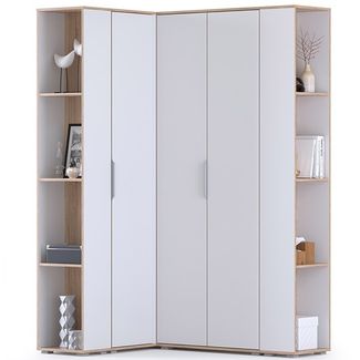 Угловая прихожая Куба компоновка № 11. Цвет - дуб сонома/белый премиум. Размер (ШхГхВ) 144х107х211 см. Комплектация - шкаф угловой, двустворчатый, распашной шкаф для одежды и два стеллажа. Угловая конструкция прихожей позволяет, практично используя труднодоступные места помещения, создать вместительную систему хранения. Универсальная сборка. None Есть доставка.