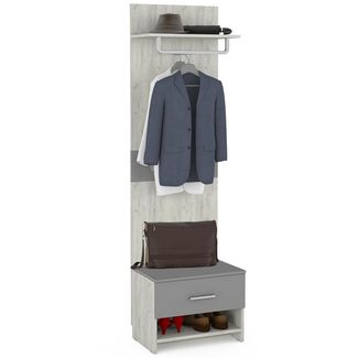 Юнона Прихожая 2. Цвет - дуб белый/серый шифер. Размер (ШхГхВ) 55х35х191 см. Универсальная сборка. Компактная красивая прихожая для уютного дома. Данная прихожая состоит из тумбы для обуви и открытой вешалки. None Есть доставка.