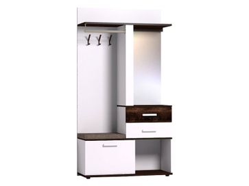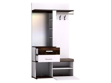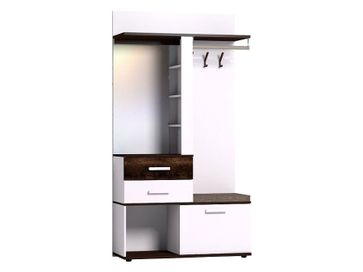 Характеристики: <br> Материал корпусов: ЛДСП 22 мм с кромкой ПВХ 0,45 мм.<br> Материал фасадов: ЛДСП 16 мм с кромкой ПВХ 0,45 мм, зеркало с противоосколочной пленкой.<br> Материал сиденья: ткань, поролон.<br> Материал крючков: металл.<br> Материал ручек: массив дерева.<br> Механизм открывания дверок: раздвижной, откидной.<br> Тип направляющих: шариковые.<br> Ориентация сборки: универсальная.<br> None Страна производства: Россия