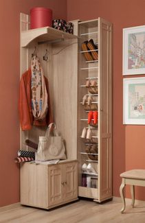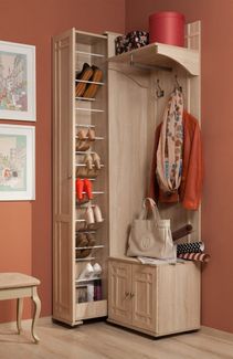 Шкаф для обуви вмещает до 18 пар и средства по уходу за ней. Предусмотрены варианты перестановки стальных прутков-держателей для хранения маленькой детской обуви.<br> Дизайнерское навесное зеркало в раме из профиля МДФ можно навесить как вертикально, так и горизонтально. Сзади изделие проклеено специальной защитной пленкой, которая не даст рассыпаться осколкам, если зеркало разобьется.<br> Вешалка оснащена двумя крепкими металлическими крючками, стационарной штангой, выдерживающей вес до 20 кг, распашным шкафчиком, полкой и антресолью. Имеет регулируемые опоры. Обратите внимание! Модуль необходимо прикрепить к стене на подвесы.<br> <br>Габариты (ВхШхГ): 2113х1162х400 мм.<br> Материалы: ЛДСП 16 мм, кромка ПВХ 0,45 мм, профиль МДФ, дно ящика — ХДФО 3 мм.<br> Рамочные фасады с раскладкой из профиля МДФ.<br> Задняя стенка шкафа для обуви — ДВП.<br> Крючки и ручки выполнены из металла.<br> Зеркало толщиной 4 мм.<br> Встроенная светодиодная подсветка для зеркала.<br> Выдвижные ящики на шариковых направляющих.<br> Регулируемые опоры.<br> Универсальная сборка: на правую или левую сторону.<br><br> Обратите внимание! Продажа в цвете Дуб Сонома ограничена для Москвы и МО.С инструкциями по сборке можно ознакомиться на страницах отдельных моделей. None Страна производства: Россия
