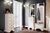 Комплект состоит из следующих элементов (ВхШхГ):<br> настенное зеркало: 1000 х 450 х 22 мм;<br> настенная вешалка: 1500 х 600 х 226 мм;<br> обувница: 446 х 644 х 383 мм;<br> тумба с одним ящиком: 909 х 494 х 383 мм;<br> комод с пятью ящиками: 1122 х 544 х 383 мм.<br><br>