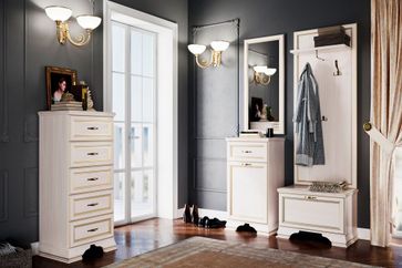 Стильная прихожая Сиена влюбляет в себя с первого взгляда. Оригинальное оформление фасадов с использованием патины и золота делает мебель изящной и презентабельной. Каждое изделие комплекта отличается функциональностью и практичностью в использовании. Элементы прихожей прекрасно комбинируются, дополняя функционал друг друга.<br>