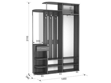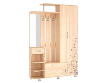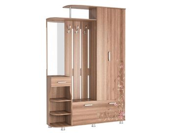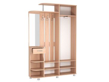 Компактная, но вместительная прихожая Барселона-2 содержит в себе все необходимые элементы. Это и открытая вешалка с крючками для объемной верхней одежды, и закрытый шкаф, и обувница и даже полочка для головных уборов. Также небольшая панель с зеркалом и ящичком и полочками для необходимых под рукой мелочей. Выдвижной ящик на шариковых направляющих. Изделие универсально для сборки, то есть вы можете изменить порядок модулей.<br> Характеристики: <br> Материал: ЛДСП, зеркало, кромка ПВХ.<br> Материал крючков: металл.<br> Тип направляющих: шариковые.<br> Максимальная нагрузка на крышку: 70 кг.<br> Размеры шкафа (ВхШхГ): 1249 х 594 х 344 мм.<br> Размеры открытой вешалки (ВхШ): 1399 х 944 мм.<br> Размеры зеркала (ВхШ): 930 х 310 мм.<br> Количество крючков: 3 шт.<br>