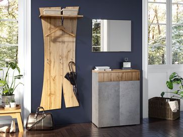 В комплект входят (ВхШхГ):<br> Комод: 940 х 750 х 380 мм.<br> Вешалка: 1800 х 690 х 300 мм.<br> Зеркало: 750 х 580 х 20 мм.<br>