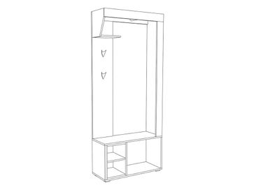Характеристики: <br> Материал корпуса и фасада: ЛДСП 16 мм.<br> Материал опор и ручки: пластик.<br> Наполнение: полка, крючки, обувница.<br> Вместимость обувницы: до 6 пар.<br> Ориентация сборки: только так, как на фото.<br> Дверца дополнена четырехшарнирными петлями.<br> Максимальная нагрузка на крючок и антресоль: 2 кг.<br> Максимальная нагрузка на полку: 5 кг.<br> Максимальная нагрузка на сиденье: до 100 кг.<br> <br> None Страна производства: Россия