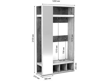 Характеристики: <br> Материал корпуса: ЛДСП 16 мм.<br> Материал фасада: ЛДСП 16 мм, зеркало.<br> Материал опор и крючков: пластик АБС. Наполнение: полка, две штанги, четыре ниши, десять крючков.<br> Вместимость обувницы: четыре пары.<br> Ориентация сборки: универсальная.<br> None Страна производства: Россия