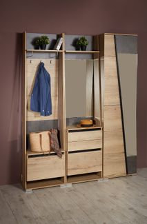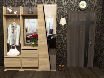 <br> В комплект входят (ВхШхГ):<br> шкаф для одежды с зеркалом: 2200 х 600 х 400 мм;<br> модуль с вешалкой: 2200 х 600 х 375 мм;<br> модуль с зеркалом: 2200 х 600 х 375 мм.<br>
